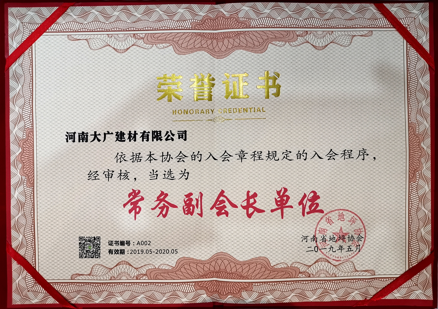 榮獲:河南省地坪協(xié)會(huì)*具影響力材料商 稱(chēng)號(hào)